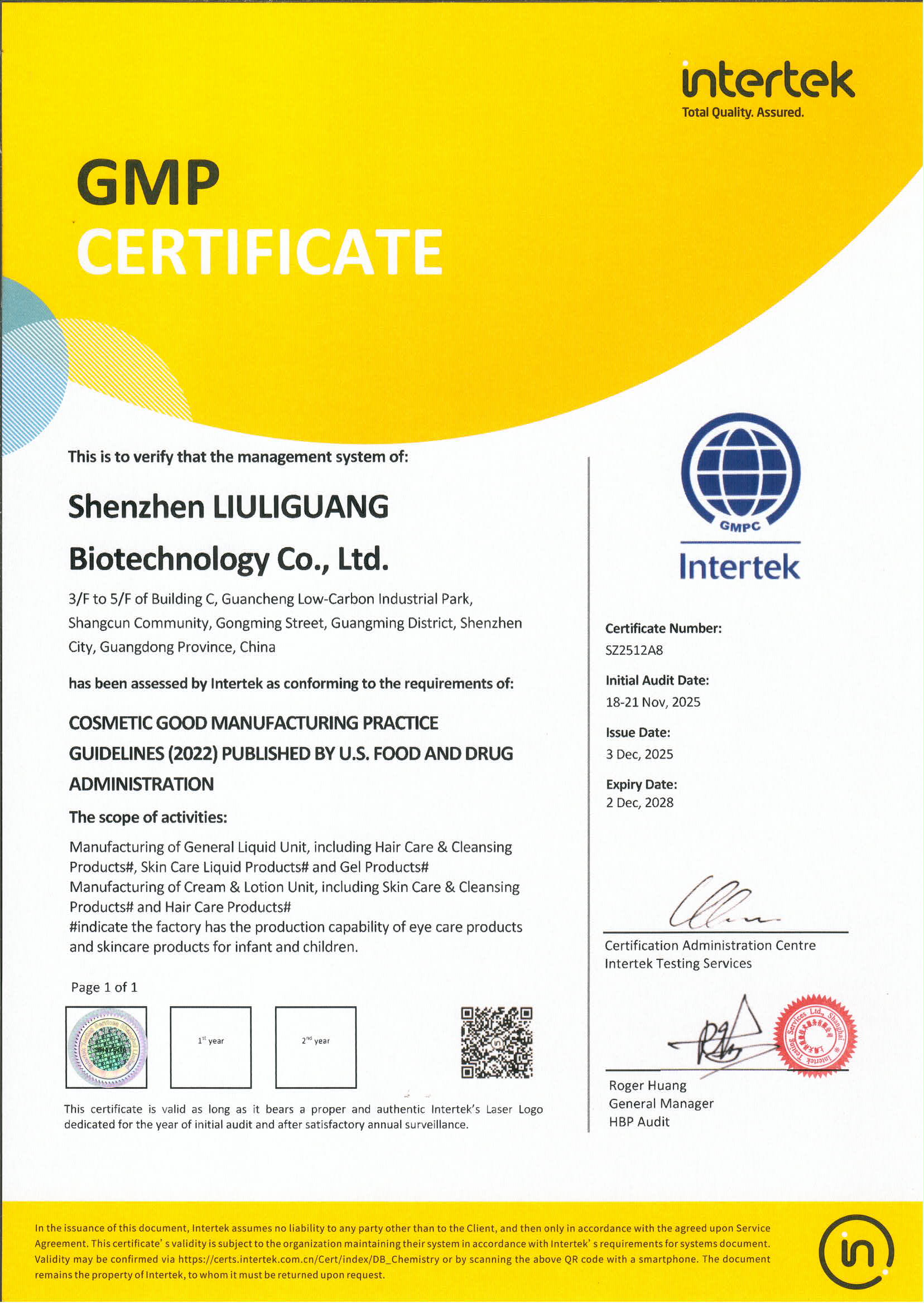 琉璃光GMP證書_美國GMPC英文證書