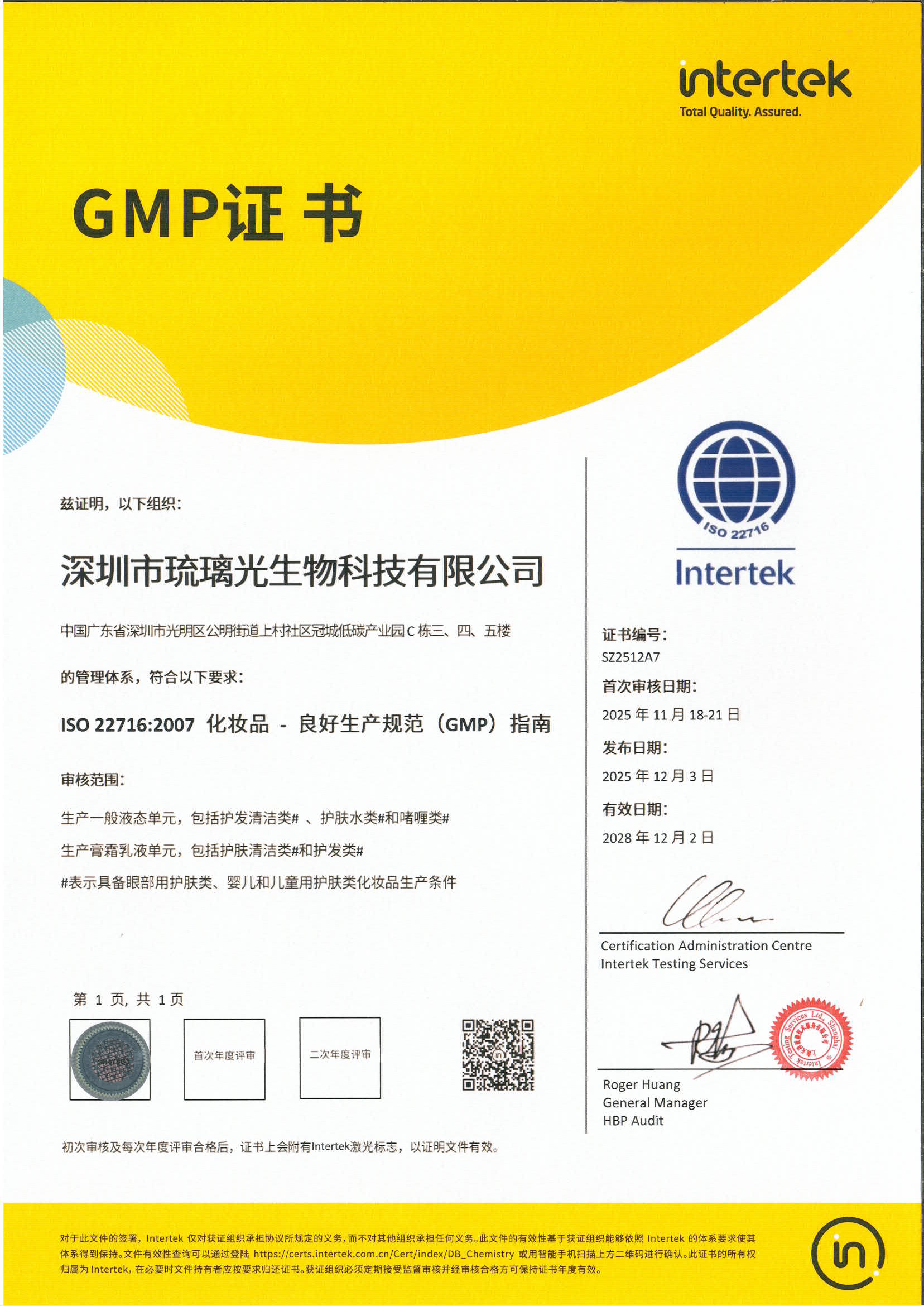 琉璃光GMP證書_ISO22716英文證書